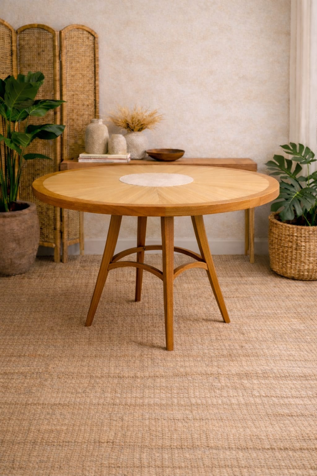 Its slim yet sturdy leg structure ensures excellent stability without compromising the overall elegance of the design. This coffee table works beautifully as a centerpiece in living rooms, villas, boutique hotels, lounges, and hospitality interiors that embrace tropical luxury, coastal aesthetics, or modern bohemian styles.