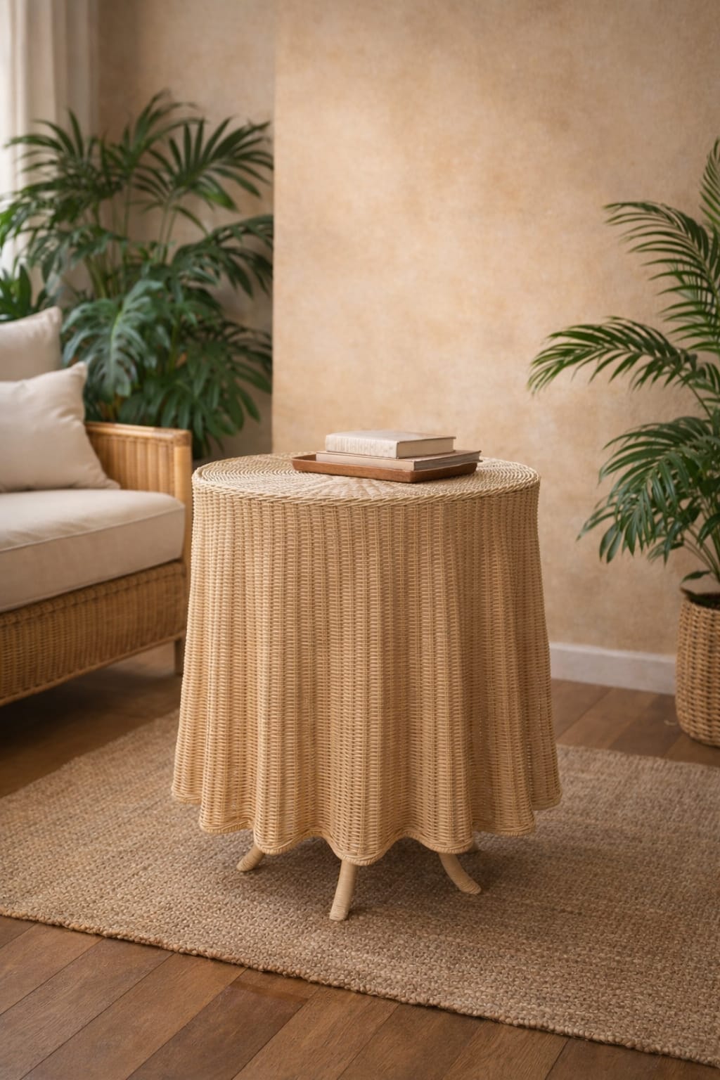 This handcrafted rattan side table reflects the harmony between traditional craftsmanship and contemporary tropical living. Carefully woven by skilled artisans using selected natural rattan, the table features a distinctive flowing form that adds softness and character to any interior.